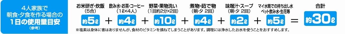ゼンケンの他機種の除去性能を大きく上回る22,000Lの浄水性能を実現!1日30L使用で2年間ご使用頂けますので、飲み水以外にも暮らしに必要なお水にたっぷり使えます。